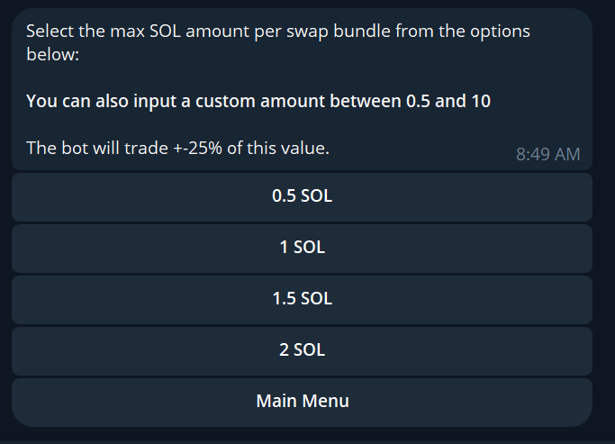 **Step 5- Choose SOL Amount Per Swap Bundle**